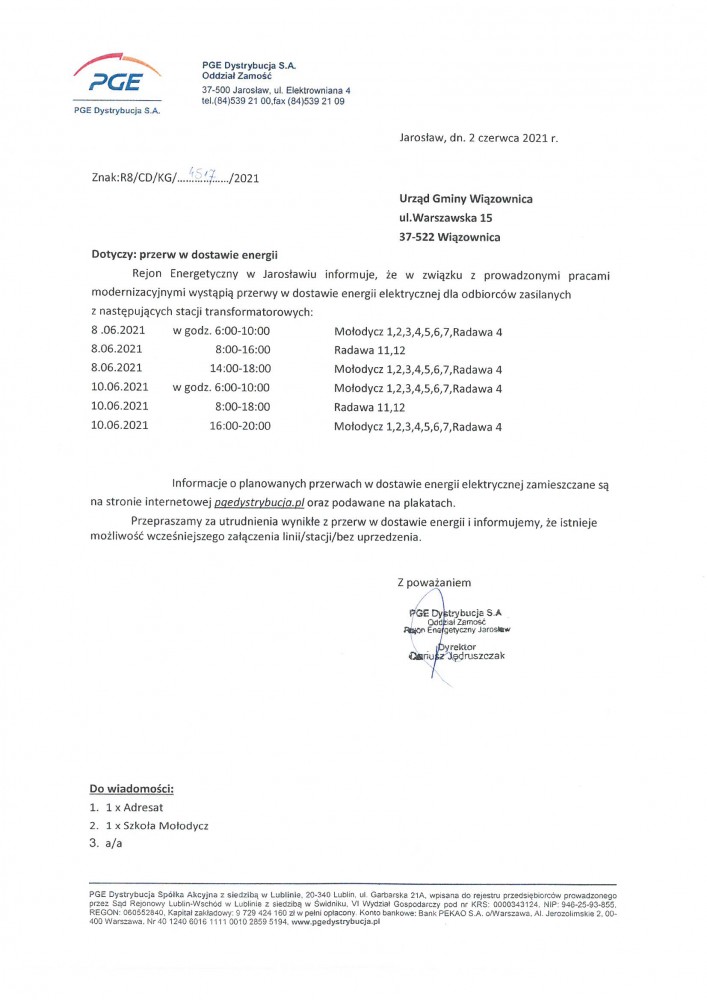 Za zrozumienie sytuacji i naszych próśb w zakresie złego stanu drogi Nr 870 Jarosław – Sieniawa – Lublin dziękujemy Pani Marszałek, Całemu Zarządowi oraz Dyrekcji Podkarpackiego Zarządu Dróg Wojewódzkich.