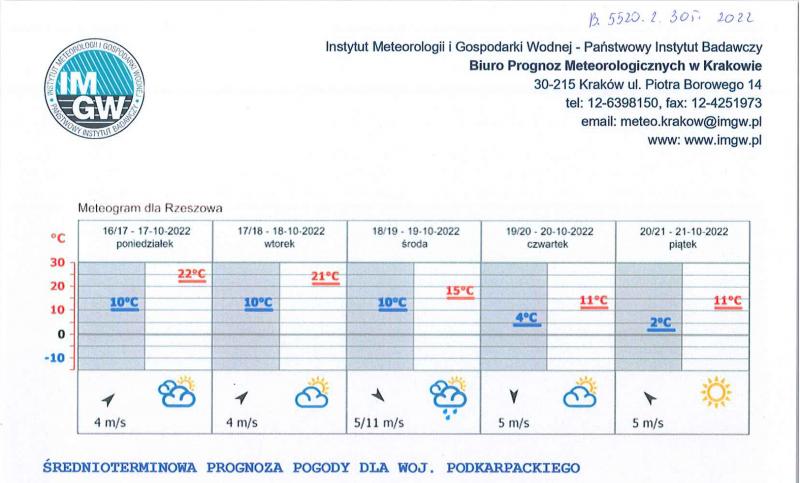Ważność:   od godz. 07:30 dnia 15.10.2022 r. do godz. 07:30 dnia 16.10.2022 r.