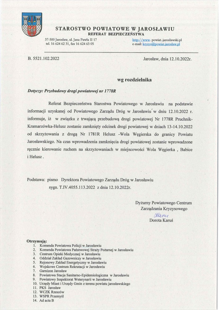 Ważność:   od godz. 07:30 dnia 20.10.2022 r. do godz. 07:30 dnia 21.10.2022 r.