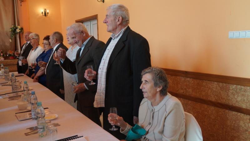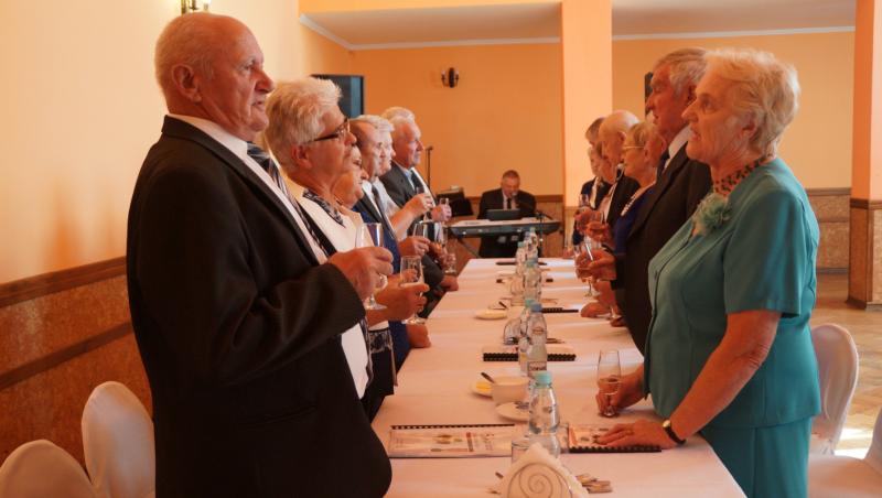 Uroczystość uświetnił Marsz Mendelsona, toast lampką szampana, kwiaty i upominki ufundowane przez Wójta Gminy Wiązownica. Po oficjalnej części uroczystości przyszła pora na obiad i słodki poczęstunek, chwilę wspomnień i refleksji, wspólną zabawę przy muzyce oraz pamiątkową fotografię.