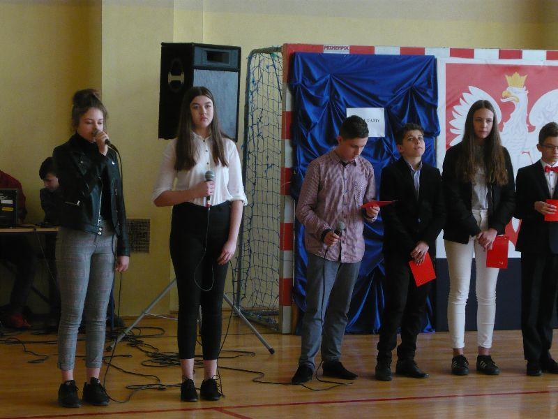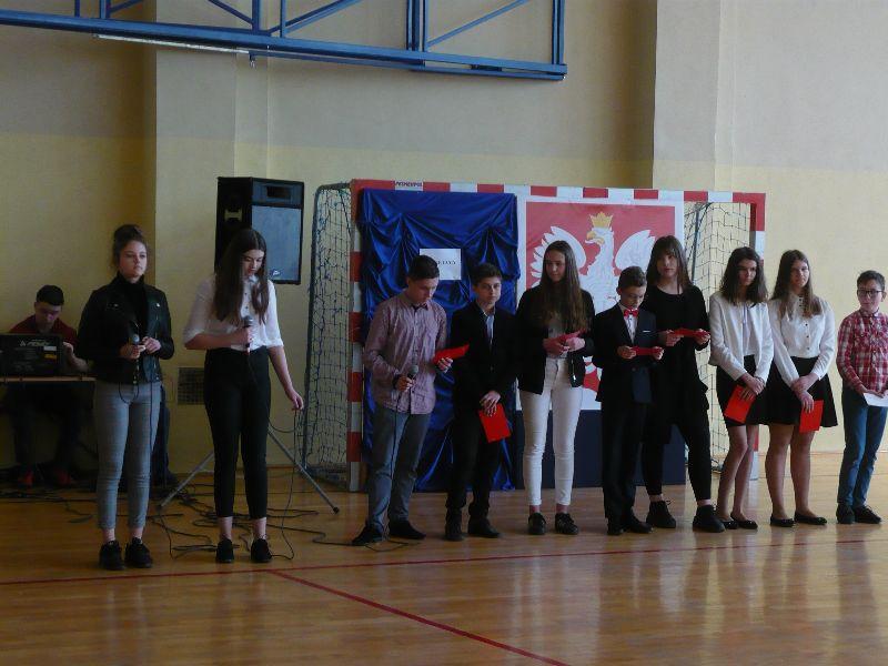 Podczas uroczystej akademii uczniowie klasy VII a przedstawili swoim koleżankom i kolegom najważniejsze wydarzenia, jakie rozegrały się 17 kwietnia 1945 roku na terenie Wiązownicy. Powaga uroczystości została podkreślona postawą uczniów i pięknymi piosenkami: „Biały krzyż” i „Ojczyzno ma” w wykonaniu Julii Dominik i Wiktorii Skrzypek. Uroczysty apel był niecodzienną lekcją historii dla dzieci i młodzieży. Uczniowie, uczestnicząc w przedstawieniu, oddali cześć zamordowanym podczas napadu mieszkańcom Wiązownicy.