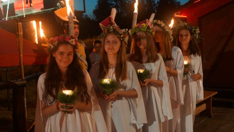 Pierwszy dzień świętowania przebiegał pod znakiem obrzędu nocy świętojańskiej. Na scenie wystąpił zespół Hetmańscy Sarmaci oraz Chór Mieszany „Jarosław”. Oba zespoły zaprezentowały różnorodny repertuar i porwały radawską publiczność do tańca. Obrzęd nocy świętojańskiej, który wymagał szczególnej oprawy, rozpoczął się tuż po zapadnięciu zmierzchu. Tradycyjnie uczennice Zespołu Szkół Innowacyjnych im. Juliusza Słowackiego w Jarosławiu zaprezentowały pokaz mody, po którym odbył się nieodłączny element tradycji nocy świętojańskiej – puszczanie wianków na wodzie. W blasku płonących ognisk, młodzi chłopcy przypłynęli łódkami z dziewczętami, których głowy udekorowane były wiankami uplecionymi ze świeżych kwiatów. Po odtańczeniu tańca wokół ogniska, wianki zostały rzucone do wody. Tego wieczoru nie zabrakło także pokazu ognia w wykonaniu Teatru Jednej Miny, który uświetnił pokaz sztucznych ogni oraz pokazu laserowego. Opuszczający widzowie amfiteatr byli zachwyceni. Co niektórzy udali się na dyskotekę, pozostali wypocząć przed dniem drugim, bo on również zapowiadał się niezwykle atrakcyjnie.