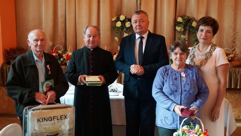 Włodarz gminy pogratulował jubilatom i złożył im życzenia kolejnych wspólnie spędzonych lat, przede wszystkim w zdrowiu i wzajemnym poszanowaniu. Do życzeń dołączyli: z-ca kierownika Urzędu Stanu Cywilnego w Wiązownicy Barbara Socha i ks. prałat Adam Rejman – proboszcz parafii pw. św. Walentego i Narodzenia NMP w Wiązownicy.