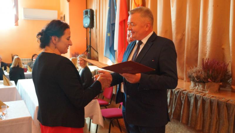 W tym wyjątkowym dniu władzom gminy towarzyszyli pracownicy Urzędu Gminy: Anna Wilk – kierownik Centrum Usług Wspólnych i Anna Florek – inspektor ds. oświaty i sportu.