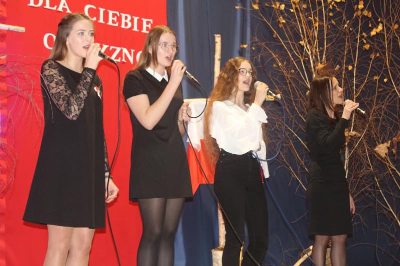 Na scenie zaprezentowały się absolwentki i uczennice Szkoły Podstawowej w Wiązownicy: Klaudia i Martyna Kowalik, Karolina Kłak, Kornelia Bujar, Kinga Haśko i Patrycja Pawełek, które wykonały pieśni i piosenki o tematyce patriotycznej, nawiązujące do obchodów rocznicy wprowadzenia stanu wojennego. Pod koniec koncertu wokalistki wprowadziły obecnych na sali widzów w atmosferę zbliżających się świąt Bożego Narodzenia, wykonując pastorałkę „Wiatr ukołysał”. Koncert prowadziła Elżbieta Haśko - opiekun Szkolnego Koła Caritas, która włączyła się również we wspólne śpiewanie wraz z młodymi artystkami.