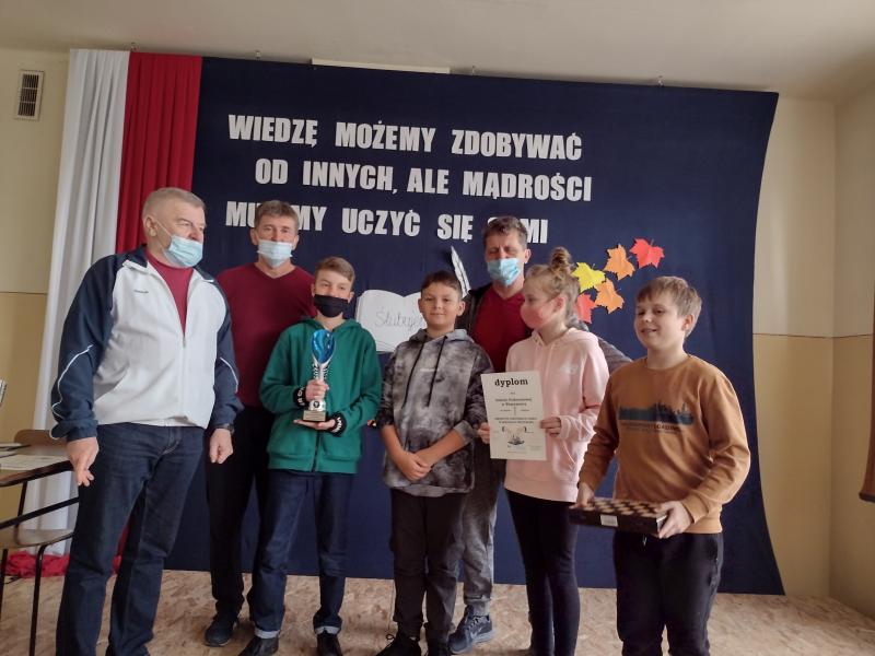 N zakończenie szachowego święta wszyscy uczestnicy zawodów otrzymali pamiątkowe puchary i dyplomy.
