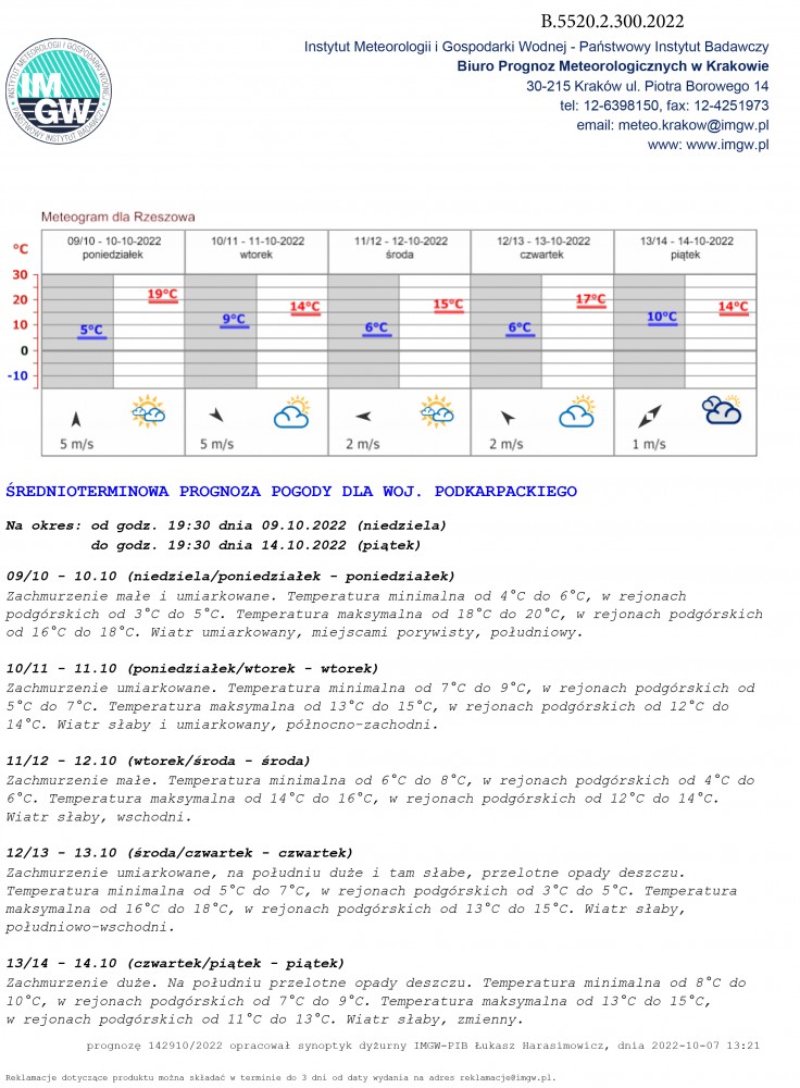 ŚREDNIOTERMINOWA PROGNOZA POGODY DLA WOJ. PODKARPACKIEGO