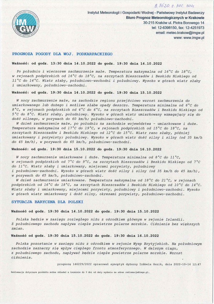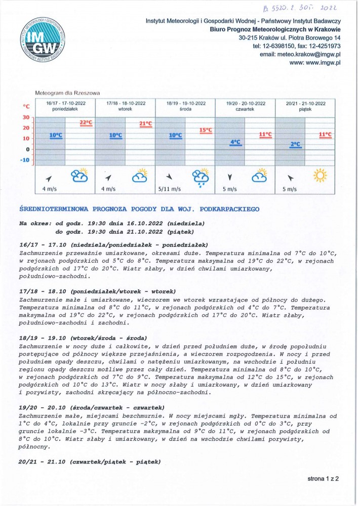 ŚREDNIOTERMINOWA PROGNOZA POGODY DLA WOJ. PODKARPACKIEGO