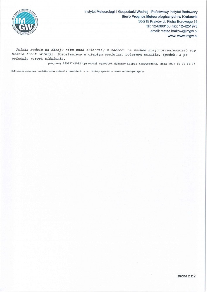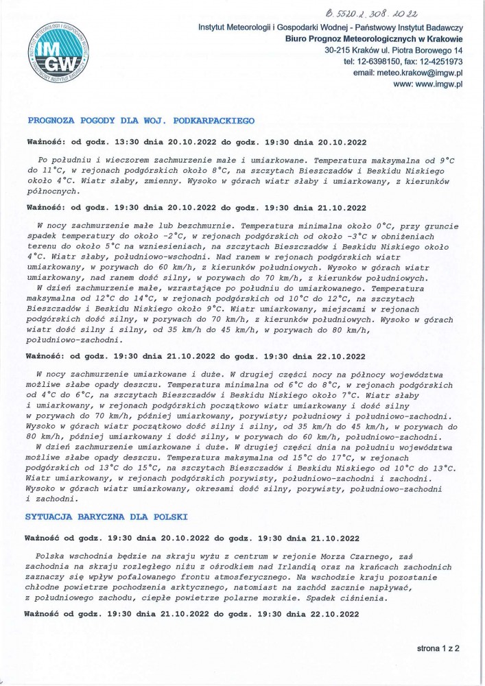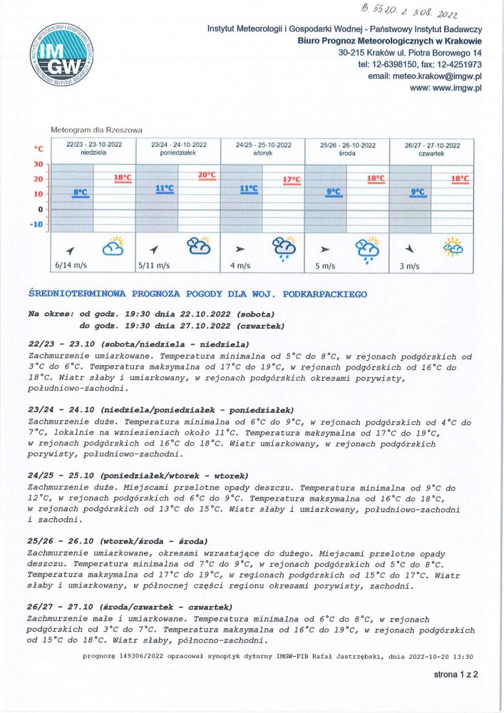 ŚREDNIOTERMINOWA PROGNOZA POGODY DLA WOJ. PODKARPACKIEGO