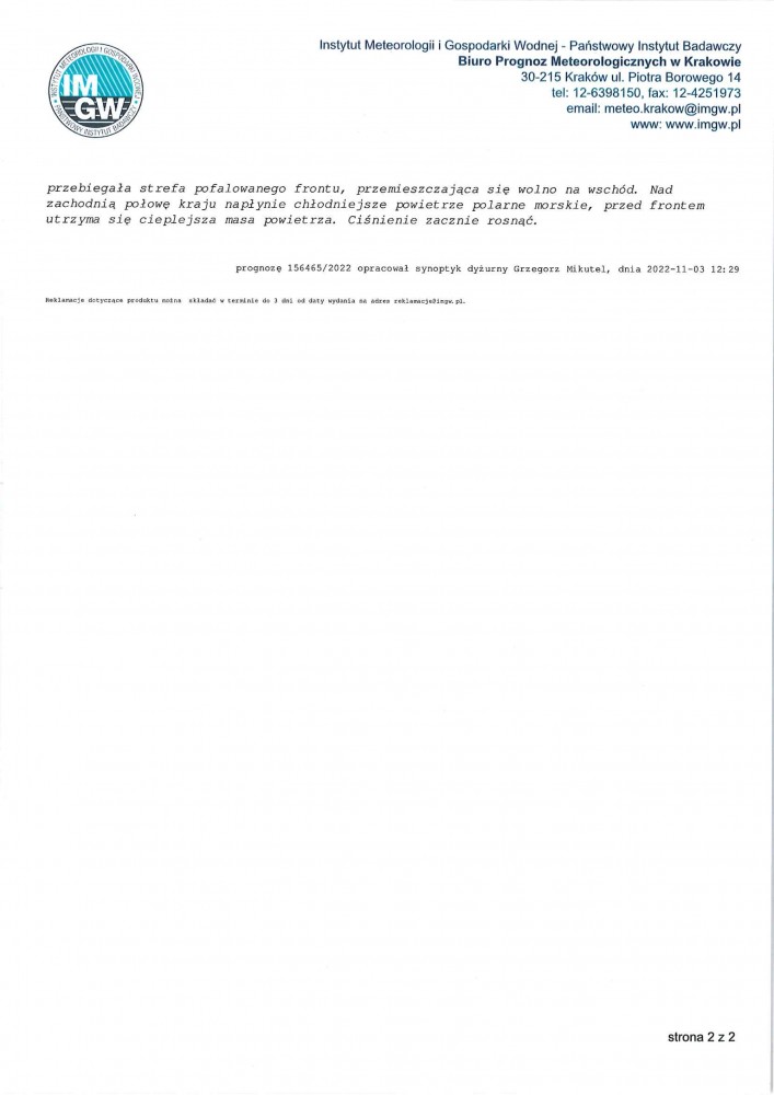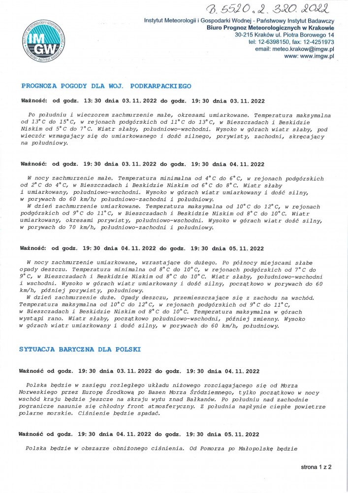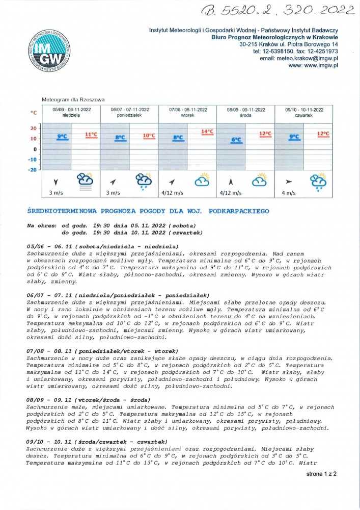 ŚREDNIOTERMINOWA PROGNOZA POGODY DLA WOJ. PODKARPACKIEGO