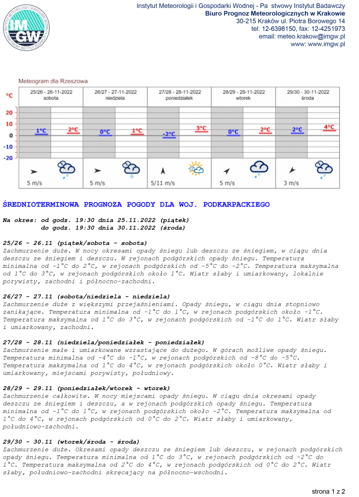ŚREDNIOTERMINOWA PROGNOZA POGODY DLA WOJ. PODKARPACKIEGO