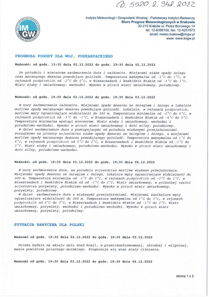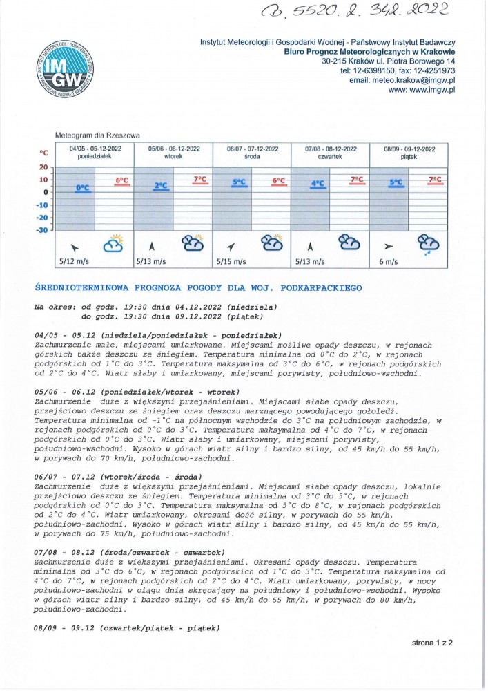 ŚREDNIOTERMINOWA PROGNOZA POGODY DLA WOJ. PODKARPACKIEGO