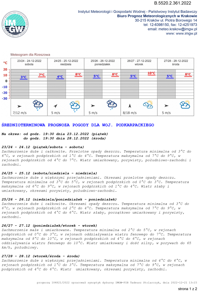 ŚREDNIOTERMINOWA PROGNOZA POGODY DLA WOJ. PODKARPACKIEGO
