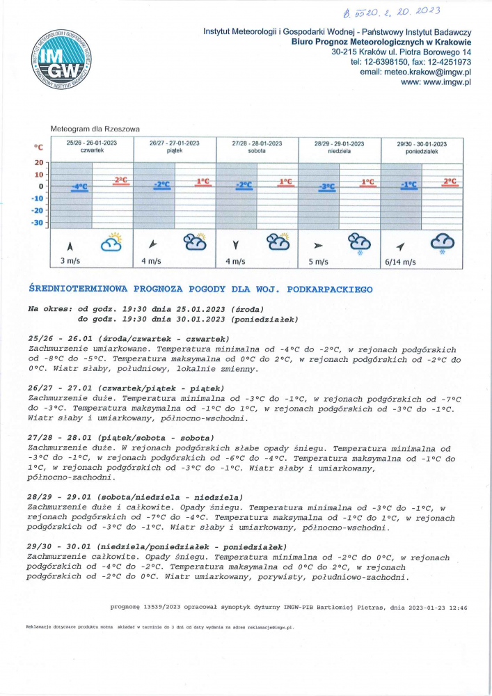 ŚREDNIOTERMINOWA PROGNOZA POGODY DLA WOJ. PODKARPACKIEGO