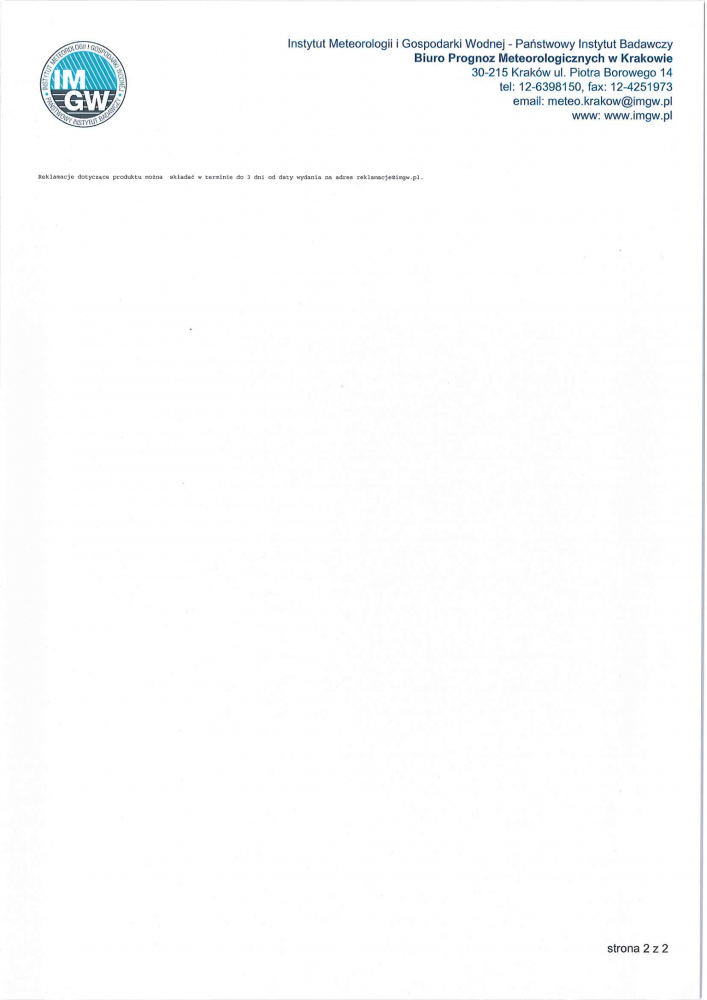 Nazwa biura:   IMGW-PIB Centralne Biuro Prognoz Meteorologicznych w Krakowie