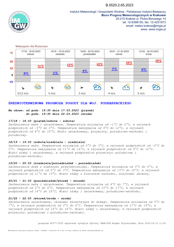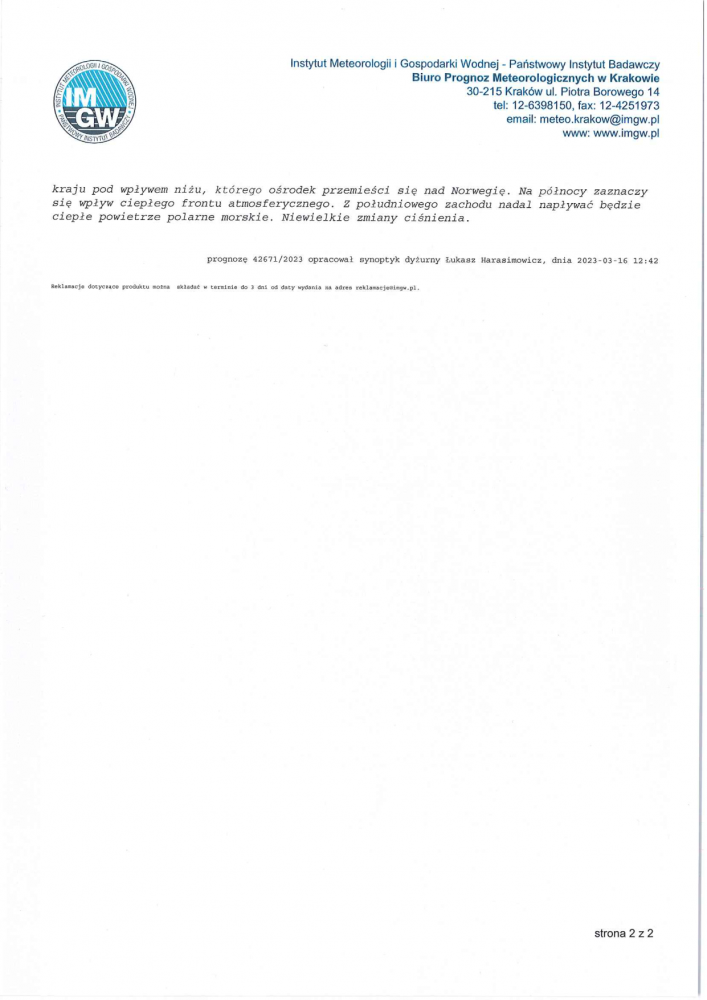 Nazwa biura:   IMGW-PIB Centralne Biuro Prognoz Meteorologicznych w Krakowie