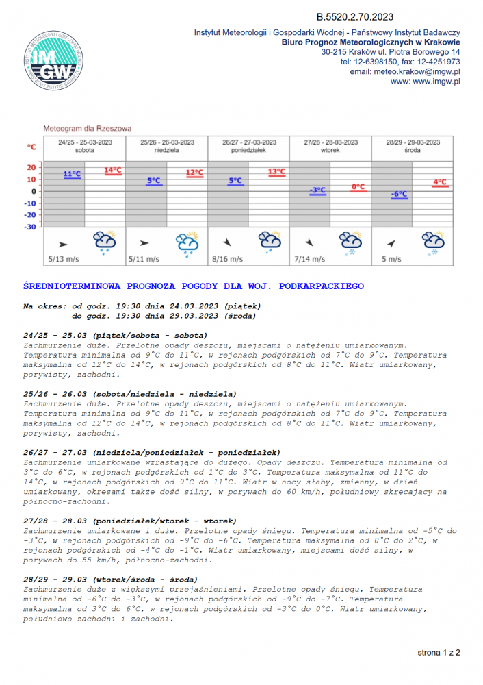 Nazwa biura:   IMGW-PIB Centralne Biuro Prognoz Meteorologicznych w Krakowie